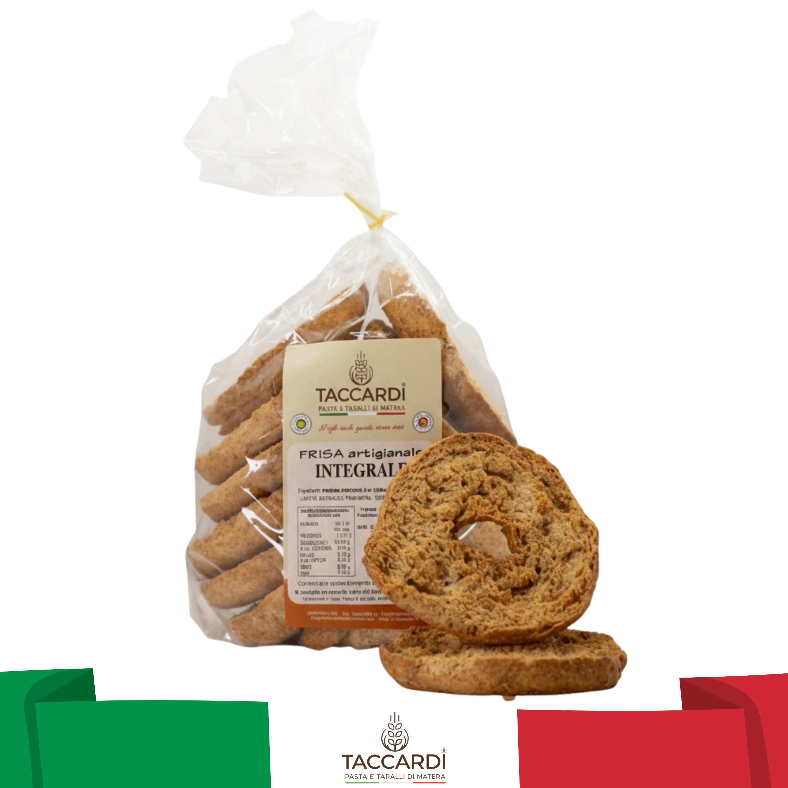 Rustique, intense et riche en fibres naturelles : la Frisa Integrale Taccardi est dédiée à ceux qui aiment les saveurs pleines et le bien-être quotidien.